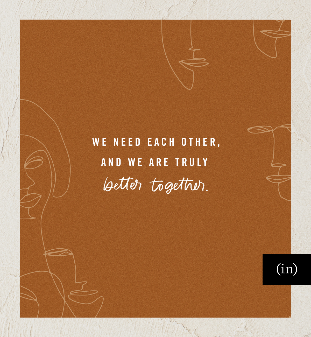 We need each other, and we are truly better together.