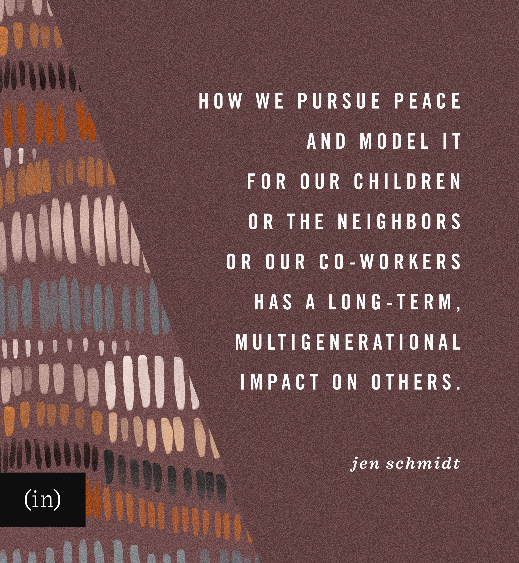 I chuckle now thinking about this exchange, but it also fires me up because small moments multiplied over time matter. How we pursue peace and model it for our children or the neighbors or our co-workers has a long-term, multigenerational impact on others. Yes, even what we model amidst discord trains and disciples the next generation of world changers, the next leaders of families, a new culture of biblical communicators. After the visceral communication challenges surrounding the pandemic, it’s a nearly paralyzing concept at times, but the dedicated effort is worth it.