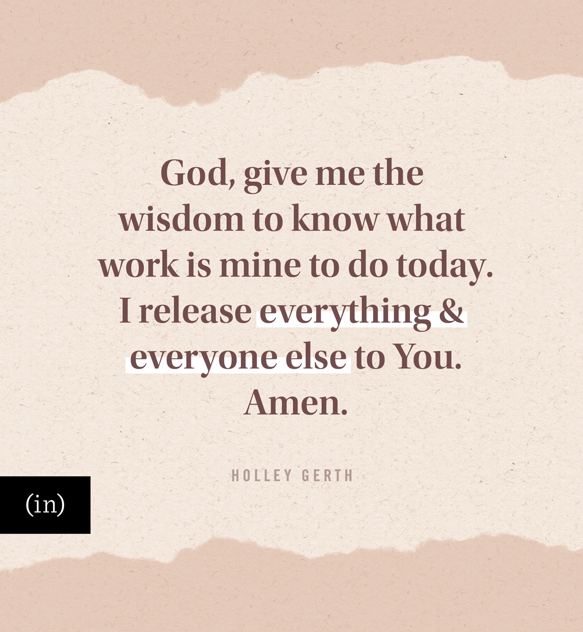 God, give me the wisdom to know what work is mine to do today. I release everything and everyone else to You. Amen.