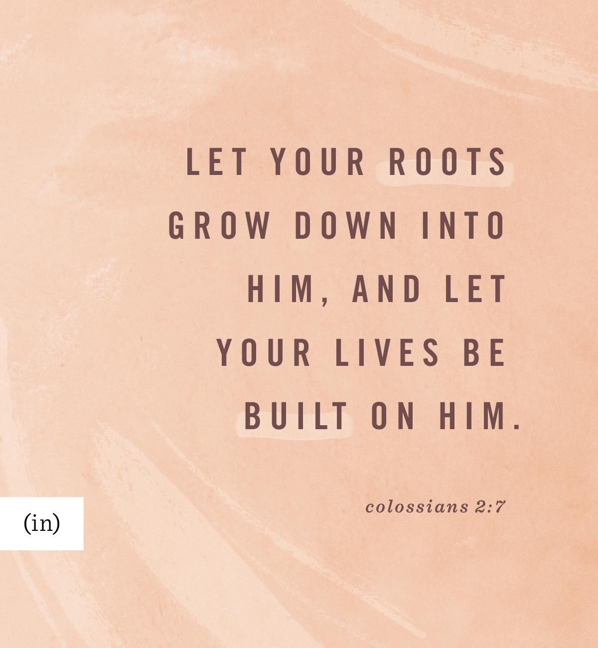 “Let your roots grow down into him, and let your lives be built on him. Then your faith will grow strong in the truth you were taught, and you will overflow with thankfulness.”