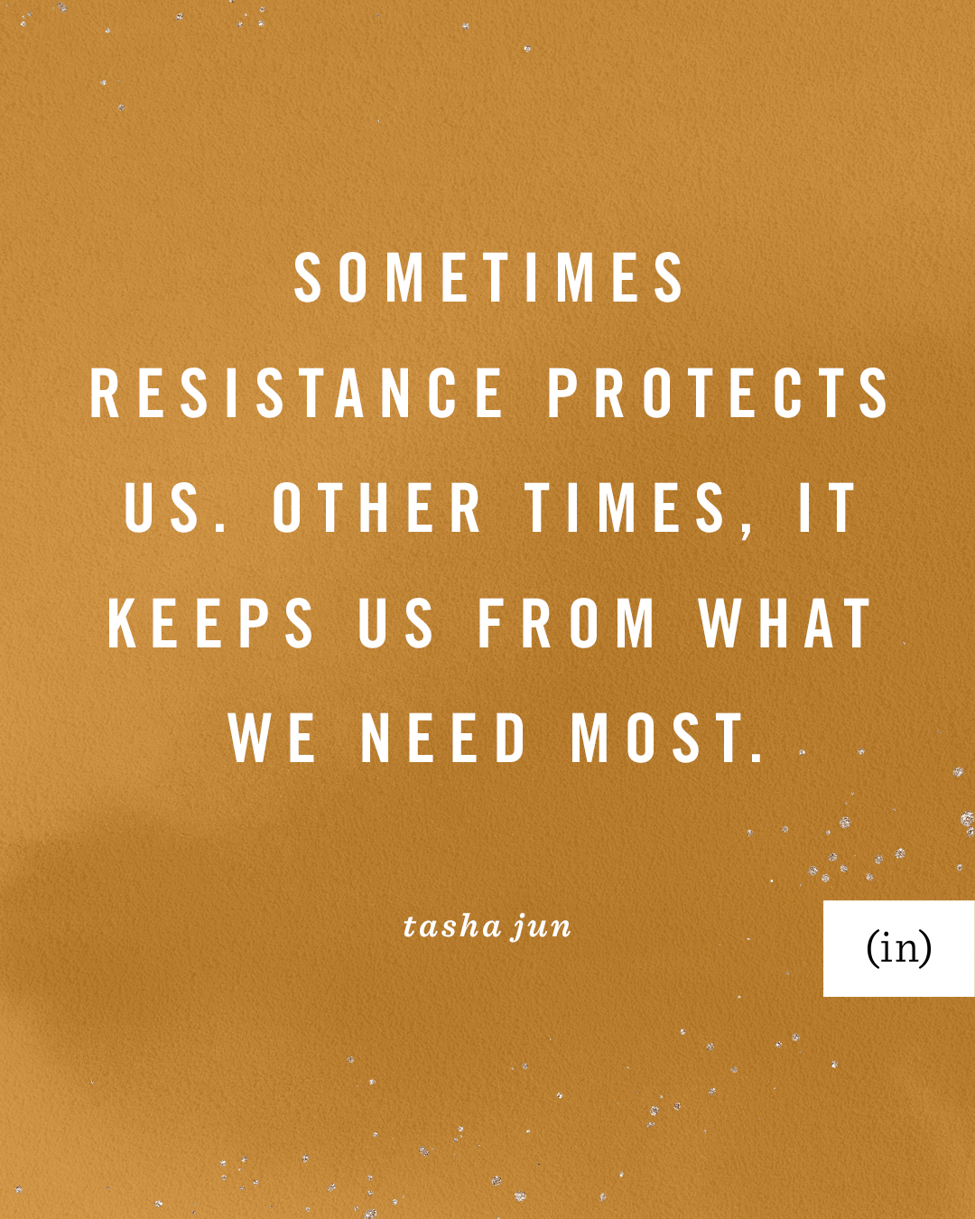 We all find resistance within us at times. Sometimes it’s quiet and other times loud. Sometimes our resistance protects us from harm and is a healthy caution, but other times it is the thing that’s keeping us from exactly what we need most.
