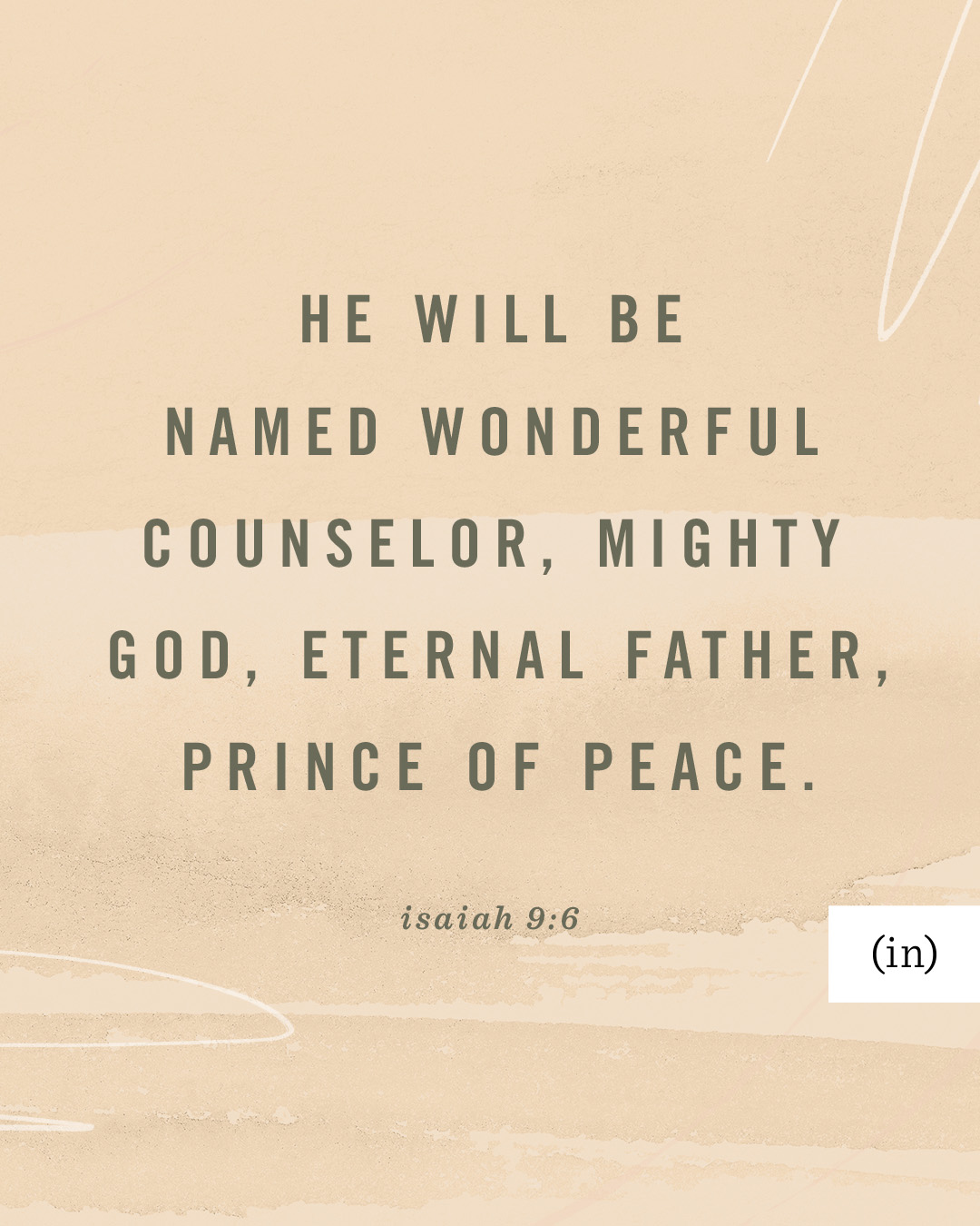 Jesus is our Wonderful Counselor. When we are in despair from overwhelming pain, we remember that God is Healer and Counselor. He is both the One who helps us and the very balm we need for our broken hearts, our fragile minds, and our bruised bodies.